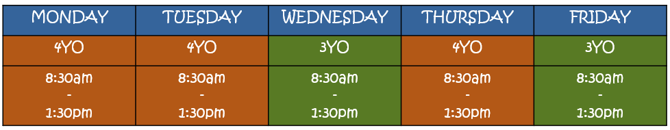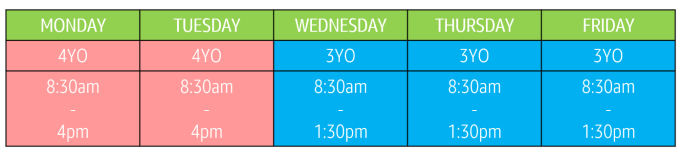 We have revised our timetable and are excited to offer long days for our four year old kinder program, and we will increasing our three year old kinder program to 15 hours per week.